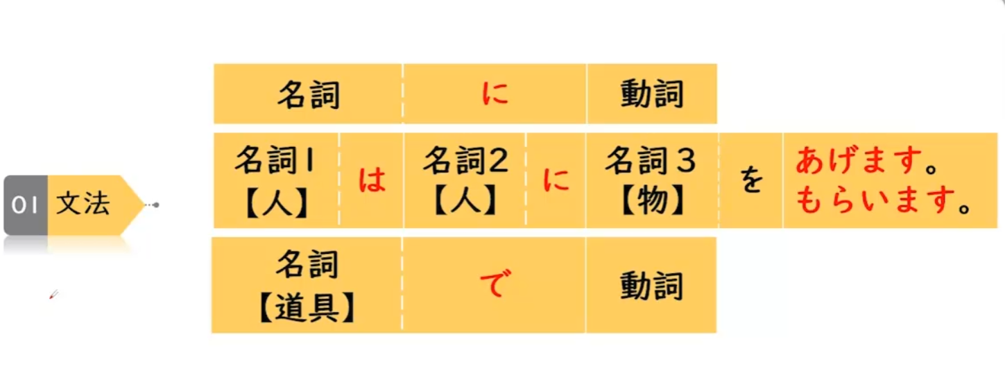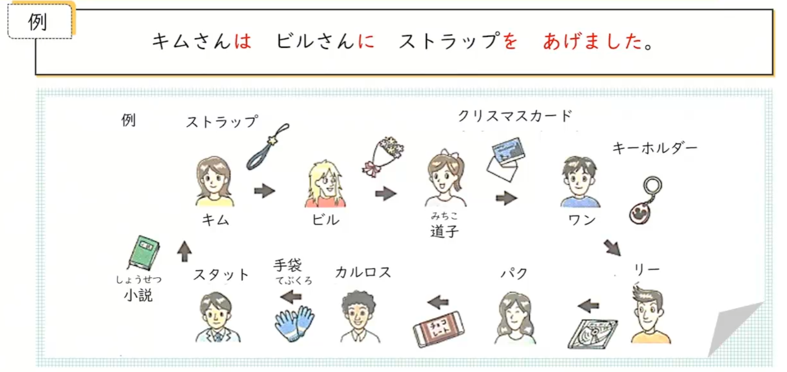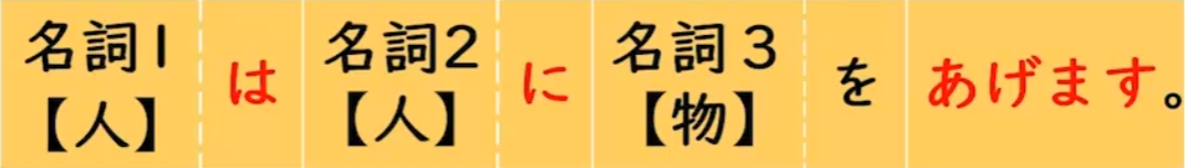 名[人]は 名[人]に 名[物]を あげます |