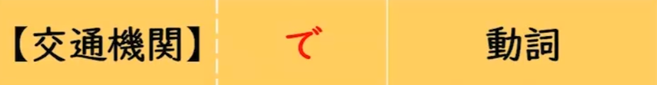 | 🚙 で | 🧭 助词「で」用于表示动作发生的手段、工具或方式。在这里接在交通工具名后,表示“乘……”。 |