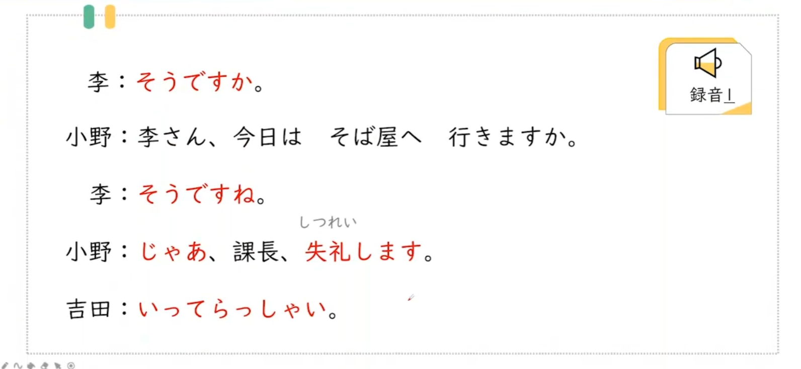 1 | 吉田:李さん、これから 昼ご飯ですか。 小李,接下来你是要去吃午饭吗? |
