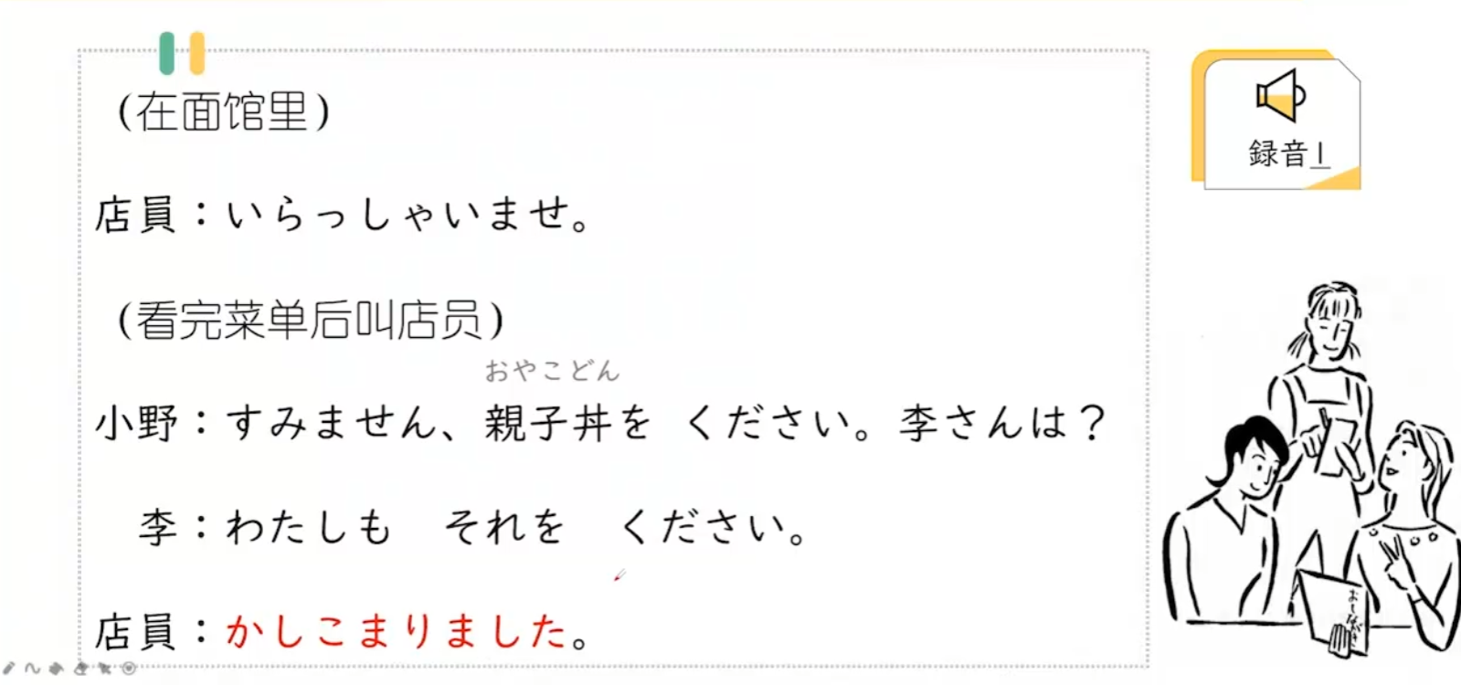 1 | 店員:いらっしゃいませ。 欢迎光临。 |