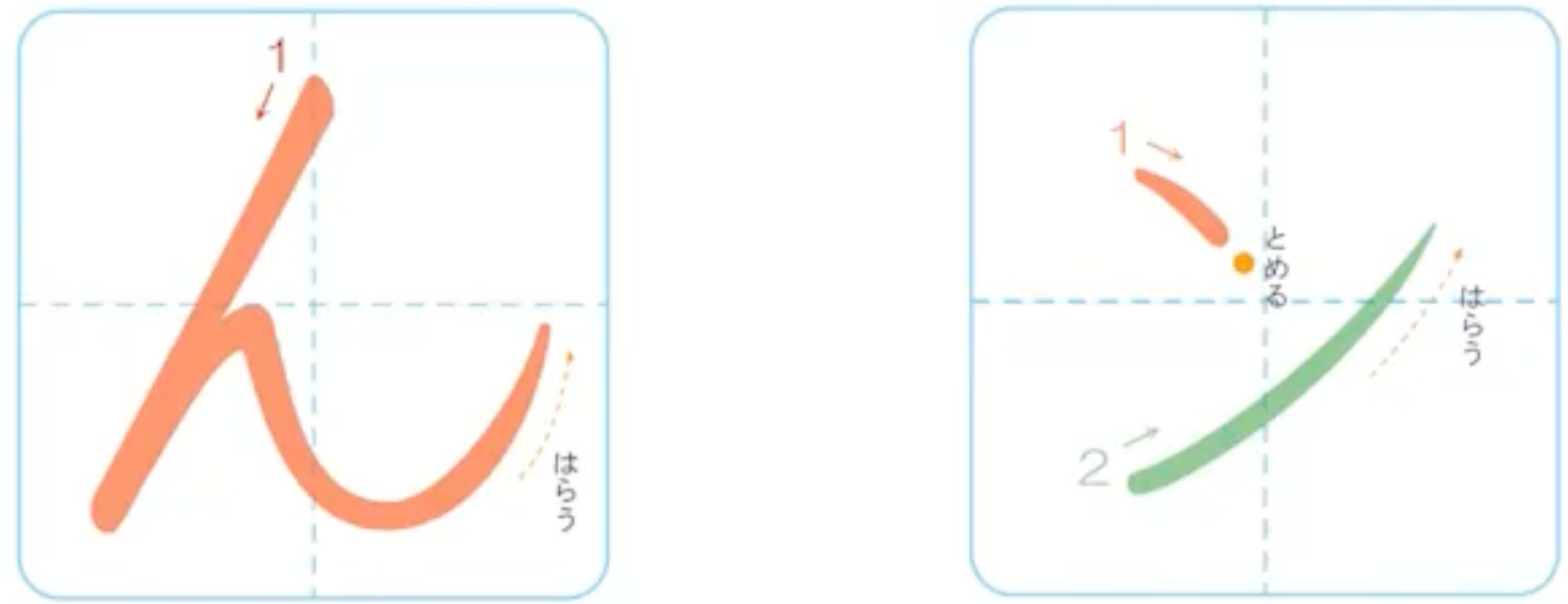 | 平仮名 | 平假名主要用于表示日语的固有词汇和语法助词,以及无法用汉字书表示的词汇。此外,平假名还用于标注汉字的读音,称为振假名(ふりがな),其作用类似于中文的拼音,用于辅助理解和朗读日语汉字。从平安时代的中文汉字的草书形式演变而来的。 | 平假名属于表音文字,每个字符表示一个音节。日语音节结构较为简单,因此平假名共有 46 个基本字符,书写形态圆润。平假名在日语中承担大量语法功能,是表达语法关系和词尾变化的主要文字。 |