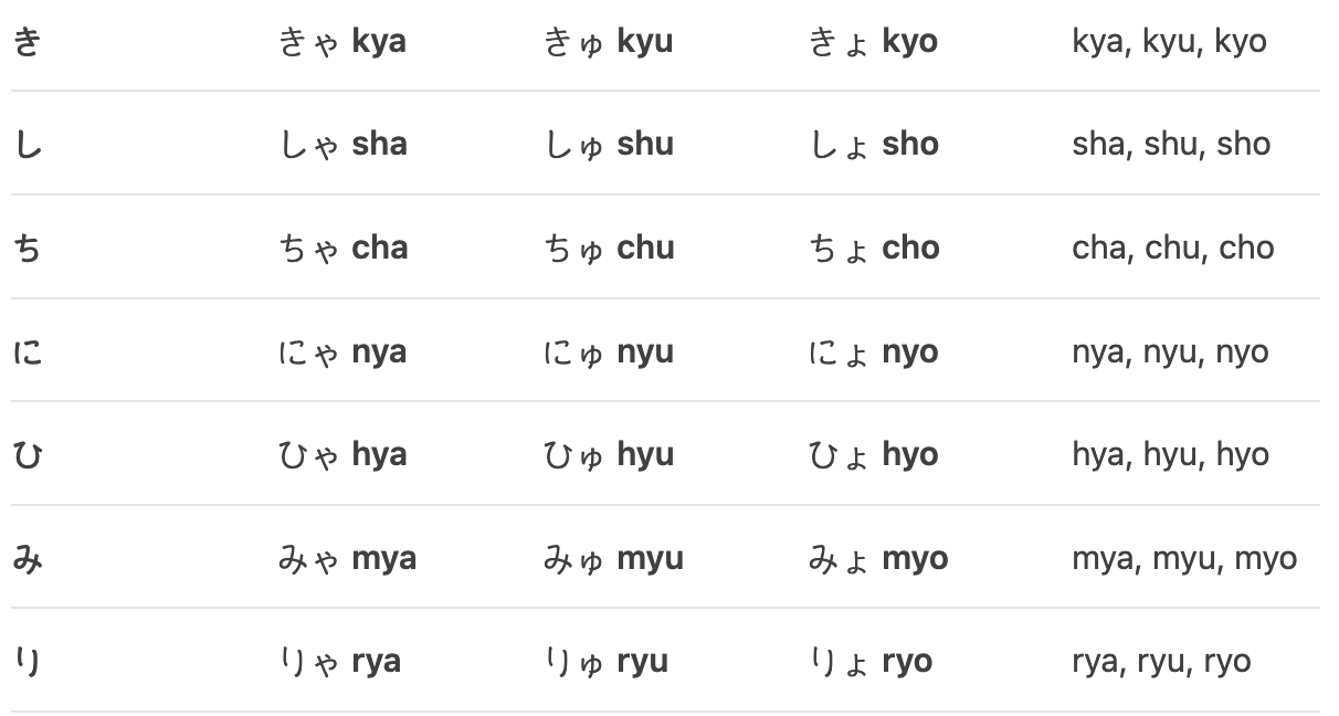 “拗音”是指由 「い段」假名(き、し、ち、に、ひ、み、り、ぎ、じ、び、ぴ) 和 小写的「ゃ」、「ゅ」、「ょ」 组合而成的特殊音节。这两个假名组合在一起,作为一个整体音节,只占一个节拍(モーラ)。发音时,要一口气读出,中间不能有间隔。