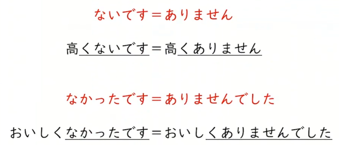另一种非过去的否定变化,可以将 くないです 直接变成 くありません,即用 ありません 替代 ないです