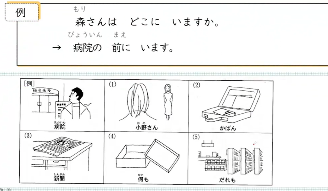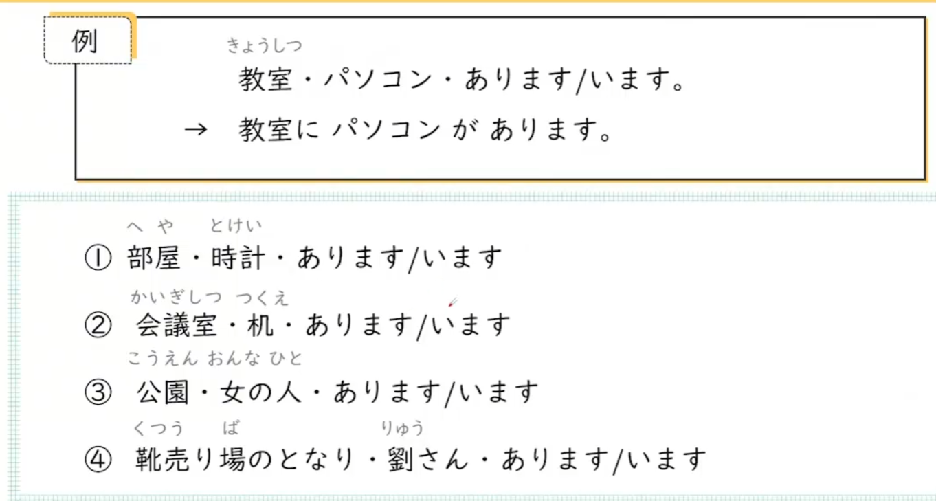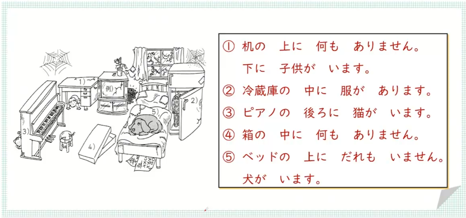 - つくえの上(うえ)に 本があります。📘(桌子上有书。)