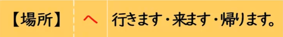 去。表示从说话者出发,朝某个方向移动,通常指离开当前位置。常与目的地连用,如「学校に行きます」(去学校)。 |