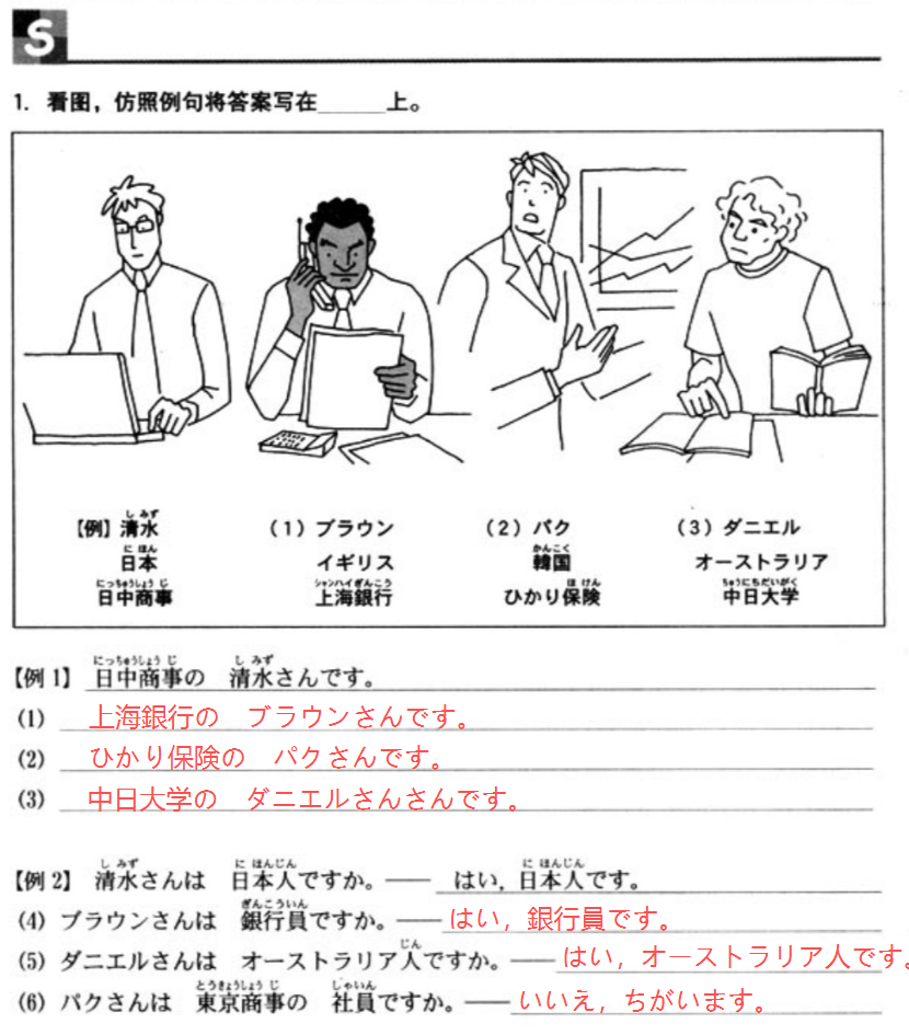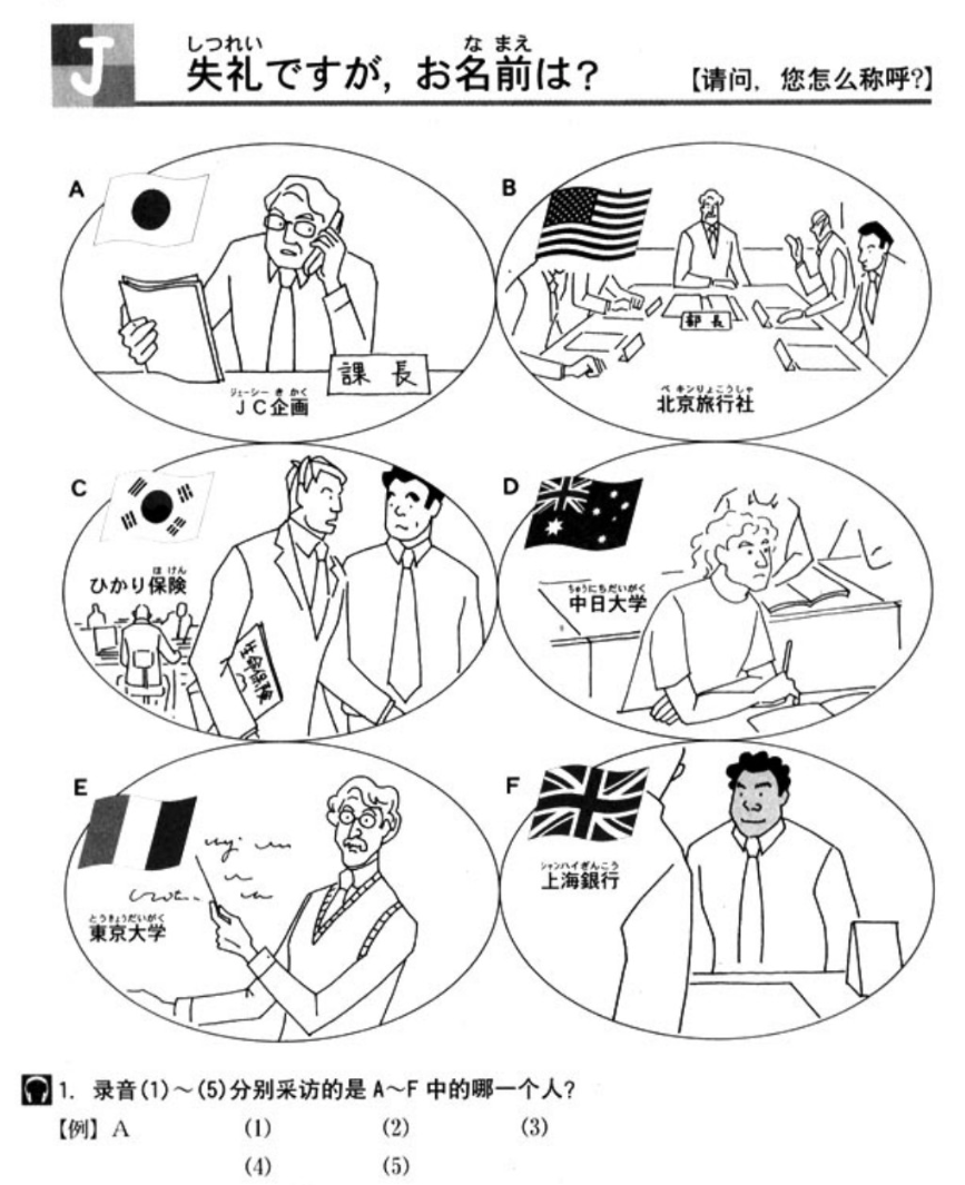 こんにちは,失礼ですが,お名前は? あっ,ブラウンです。イギリス人です。 F 会社員ですか。 はい,上海銀行の社員です。 そうですか。ありがとうございます。